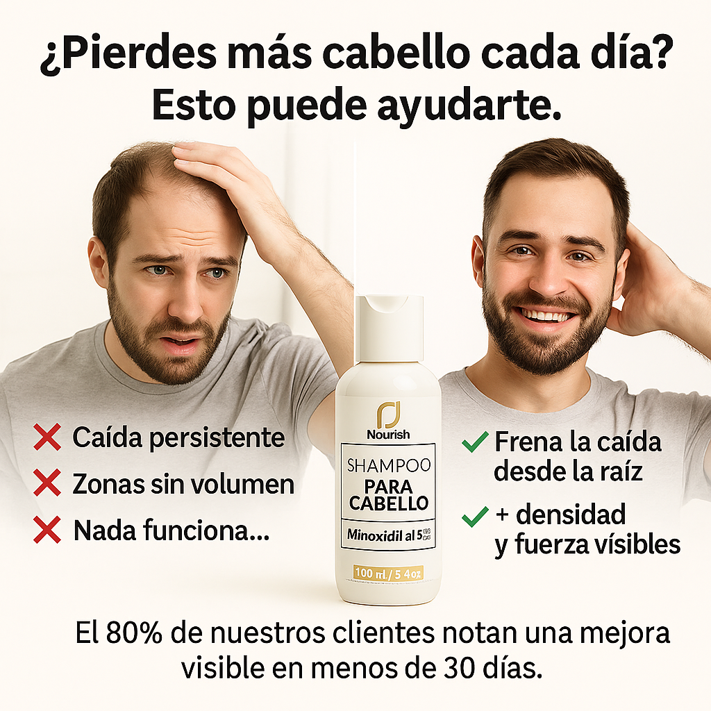 Nuestro shampoo con Minoxidil 5% es crecimiento real.